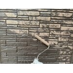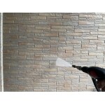 外壁の状態が良いタイル調の面材には、クリヤー塗装を提案するが、今回は色合いを変えたいとの事。塗装をしないといけない為、ダブルトーンで凹凸を出して最後に多彩模様を吹き付けることによりさらに奥行き感のある面材に仕上がります。工程は4工程と他の塗装に比べて金額、日数等かかりますが、タイル調の面材には非常にお勧めです。