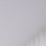 猫ちゃんが好きなお客さま。 壁紙のところどころに「猫の足(肉球)」の柄が入っています。 ただ壁紙を貼るだけではなく、猫ちゃんが室内に入ってから出ていくまでの足跡の向きをイメージして、壁紙の柄をプランしています。 心も和む面白いプランです。