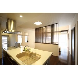 どっしりとした古民家の外観に合わせて内観も重厚感を持たせつつも、使いやすさ重視のモダンなレイアウトに設計。吹抜けのあるリビングで空間を無駄なく使い、水回りの動線にも配慮しました。キッチン回りだけではなく、部屋から部屋へ行き止まりが無いサーキュレーションプランの設計で効率よく使って頂けるようになりました。また、築85年の古民家が、これからも長く安心、快適にお住まい頂けるよう、耐震補強と減築を行い、住まいの機能性を全面的に見直し、その佇まいを残したまま現代の住まいへと生まれ変わりました。