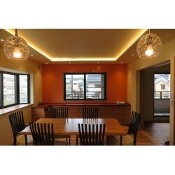 畳敷きだったスペースを少し利用して収納を設けました。部屋にあふれがちな通信機器なども全ておさまるようにして、すっきりとしたダイニングとなりました。
