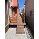コンクリート剥き出しで無機質だった門柱も、外壁と同じパターンにして色も同色に仕上げたことで、統一感が出ました。 人工木のウッドデッキに交換しました。
