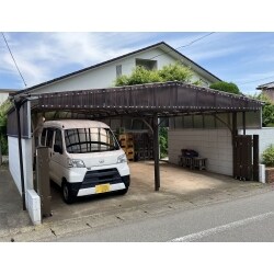 以前は一般的だった塩ビの波板葺きのカーポートでした、焼けて色味も濁っていました。
