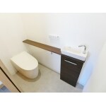 「1階トイレ」ゲストも使用する1階のトイレには手洗い器を設けました。