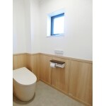 「2階トイレ」トイレ室のお隣に洗面台がある為、トイレ室には手洗い器を設けずあえてシンプルに。