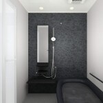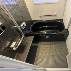黒大理石調のパネルで高級感のあるお風呂に。