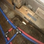 キレイサーモバスのダブル保温構造でお湯が冷めにくく、床がヒヤッとしないLIXILのリデアMタイプをご提案させていただきました。シャワーは残留塩素を低減する浄水カートリッジ内蔵スライドバーから、空気を含んだ大粒の水滴が心地よく噴出する超節水アクアシャワーです。換気扇は常時換気機能付き乾燥暖房機をお付けしました。築年的にも土台の腐食対策や配管の交換は早めに済ませた方が良い状況でしたので、不安要素を取り除くため土台の補修や給湯給水配管を樹脂製架橋ポリエチレン管に更新するようご提案をさせて頂きました。