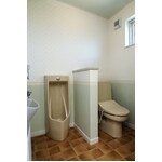 プランのポイント 生活観が出ないよう、玄関やキッチンの収納を充実。各部屋にウォークインクローゼットを設けました。デザインは大人を意識した北欧モダン・ヒュッゲ仕様で、色調や照明、カーテンなどトータルコーディネイトをご提案。永く暮らしやすい動線も考慮しました。 プランと施工の工夫 お子さんが靴を収納しやすい動線と、玄関からリビングへのデザインアプローチを工夫。外遊びの後は勝手口から直接浴室に行けるようにしました。また、玄関そばの客間を書斎にご提案。年に数回の来客より、自宅でも勉強や仕事の整理をする、ご主人の使いやすさを優先しました。 住宅への配慮 お子さんの友達が大勢遊びに来るお宅なので、2階トイレに男子用の小便器を設置。3歳の末っ子も昇降が簡単なように、緩やかなけい勾配の会談に掛け替えました。元気が出る集中力が高まるなど、風水設計の考え方をアクセントウォールに取り入れ、いつも溌刺と暮らせる環境にも配慮しました。
