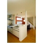 壁際のキッチンを家族の顔の見えるL 型キッチンにしました。