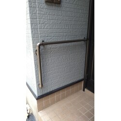 段差を上り下りする際の補助となるように、手すりをお取り付けしました。 ご利用者様の手が無理なく届く位置を確認し、しっかりと固定しています。