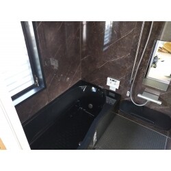 「ご高齢のお母様が使いやすい浴槽にリフォームしたい」というご依頼を頂きました。 リフォーム前は、ベンチ浴槽だったのですが、立ち上がるときに踏ん張りが効かないので、何とかしたいとのことでした。 また、折角直すのであれば黒を基調にシックな雰囲気で、掃除が楽なお風呂に仕上げたいとのご要望を頂きました。