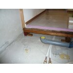 こちらのお宅は、システムバス下の空間が20cm弱と非常に狭く、排水勾配を確保するために浴室入口ドアの下枠が脱衣場床よりも上がっており、わずかに隙間が空いていました。