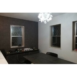 リビングのクロスを張り替えたいとのご要望でした。 家具の雰囲気に合わせて、ブラックのアクセントクロスをご希望でした。