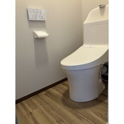 タンクとウォシュレットが一体型のトイレへ交換し、見た目がとてもスッキリし、お手入れもしやすくなったと思います。 クロスとクッションフロアも貼り替えをし、以前のトイレとは印象が変わりました。