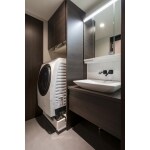 ドラム式の洗濯機によって、すごく圧迫感がある洗面空間です。