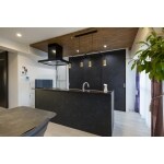 | その他採用機器・設備 | 【造作カップボード】 ダイケン 3枚引き違い戸 【キッチン面材】 AICA TJ 10067K ダストグレー ダーク 【レンジフード】 富士工業 センターバルケッタ CBARL 952(ブラック) 【内装】 天井:サンゲツ SP9553 壁:ルノン RP245 下り天井アクセント:シンコール BB1597 |