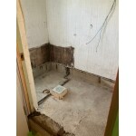 在来浴室でバランス釜のガス栓などは露出していました。 床は水捌けがあまり良くない状況でした。