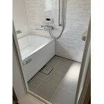 ユニットバスへ交換しました。 床はとても水捌けが良くなりました。 壁はマグネットでくっ付く仕様なので、収納などのお手入れもしやすくなりました。 お選びいただいた壁と床のお色もとてもお洒落で、お風呂に入るのが楽しみになりますね。