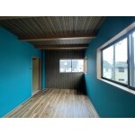 無垢のフローリングが飴色の板壁にマッチした洋室