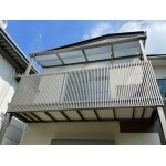 木造のバルコニーを撤去、ダークブラウンの縦格子タイプへ。
