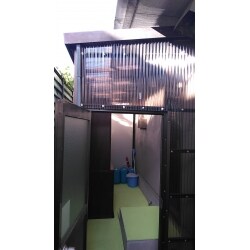 勝手口から外に出たサービスヤードの波板貼替です。建物側以外が波板で囲われています。