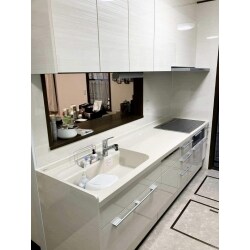 L社のリシェルSIを設置致しました。 ホワイト系の扉カラーが「スッキリさ」と「清潔さ」を高めています。キッチンリフォームを行う方の大半はホワイト系扉カラーを選択されています。パッと見てスッキリして清潔感のある印象を与えるのが、選ばれる理由なのかもしれません。