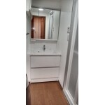 洗面のすぐ横に分電盤があり、分電盤の位置の変更が可能か、提案できる商品があるか相談したいとのことでした。 現在のサイズが現在主流のものではなく、壁面に密着しているタイプ。 鏡を残して下台のみ交換するか、分電盤を移動して新しい洗面台を入れるかご検討でした。