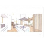 中廊下を取り込んだLDK、水廻り動線の整理をしました。