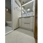 お客様のヒアリングのもとに色々とご選定させて頂きました。以前は開き戸タイプの収納と壁面に鏡が付いていたので、収納が無く、非常に限られたものを置くだけでいっぱいでした。三面鏡の裏も収納なので、収納力はかなり増えたと思います。