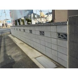 既存のブロック塀は取り壊して新しいブロック塀を施工しました。風通しを良くする為に穴の開いたデザインのブロックも使用しました。