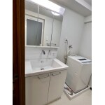 現在、お使いの洗面化粧台と同様に三面鏡の裏にも収納があり、ボウルが深いモデルをご提案いたしました。今回は壁紙は交換せず、床クッションフロアを張替え致しました。洗濯防止パンの汚れが気になるとのことでしたので、せっかくの機会なので交換をご提案させて頂きました。交換に際して、一緒に行ってしまう方が良いとされる工事は積極的にご提案しております。また違う機会で行っても良い工事もあります。今回の床クッションフロア張替えに際しての防水パンの交換などはサイズの違いによってクッションフロアの見えるところ、見えないところが出てきてしまうこともあるので、提案致しました。