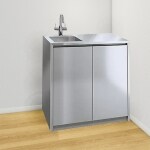 とてもシンプルな無駄を省いたデザインですが、フリースペースは広がりました。観音開きの戸で広い収納スペースがあり、ナイフホルダーもついています。内側も全面ステンレス製で清潔にお使いいただけます。