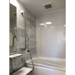 お客様と協議しまして、選定させて頂きました。従来のユニットバスに比べ、床も柔らかくてヒンヤリしづらく、満足頂いておりました。換気扇から換気扇への交換でしたが、浴室暖房換気扇へのアップグレードも可能です。今回のお客様は分電盤ブレーカーに空きが無かったので換気扇となりました。