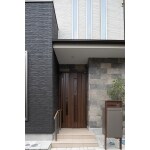 異素材を用いてモダンな外観に一新。アプローチの整備や宅配ボックスも設置しました。玄関扉はスマートキーシステムも導入しています。