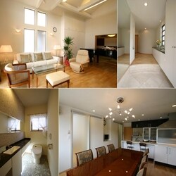 人々を引きつけるひとがいます。人が集まる家があります。K邸はお客さまの多いお宅。いつも大勢いらっしゃいますが、昔風の間取りでおもてなしにひと苦労。暗い室内もなんだか憂鬱。思い切って和室をなくし、開放的なリビングに改造。高い天井を吹き上げにし、正面上部と側面に大きな窓を設置。ガラスドアと合わせ、3方向から自然光がたっぷり入ります。2階ロフト(子供部屋)もスリット入りFIXガラスでプライバシーを保ちつつ採光。家中明るい住まいになりました、お客さまも家族もくつろぐリビングでは、今日も賑やかな会話が弾みます。