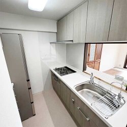 飾り棚をアクセントにした2列型キッチン