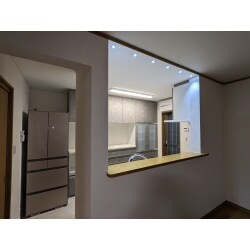 間取りには不満を感じていなかったので変更はしていません。キッチン・ダイニング間の開口を大きくして、お料理をしているときに開放感があるように改装いたしました。