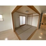 全体を明るく張替えいたしました。壁紙はLDKと同じものを使い畳もシックなデザインの畳を使用することで、空間をつなげて使う際にも洋風にマッチする和室となりました。