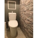 フチなし便器を気に入られLIXILアメージュZに決まりました。ウォシュレットは継ぎ目の少ないデザインで便座裏の拭き掃除も簡単です。 大6L・小3.8Lと節水率もよくなり、従来品の約69%節水になります。 「せっかくリフォームをするなら内装にもこだわりたい」とのことで打合せを重ね内装を決めていきました。 アクセントには、ブラウンやグレーが混じっているレンガ調クロスに決定。背面には落ち着きのあるダークグレーを組み合わせました。 海外の街並みを思わせるヴィンテージ感溢れるカッコいいトイレ空間に仕上がりました。 施工後は、「オシャレなレンガ調クロスで納得のいく内装になり嬉しい」ととてもお喜び頂けました。