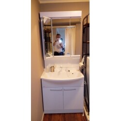設備が古くなってきたので交換したいとのことでご相談いただきました。三面鏡、シャワー水栓、収納は両開きでご検討されていました。