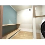 脱衣所から中廊下を介し、ほぼ直結で動線確保。ランドリールーム内もかなり家事が楽になったご様子です。
