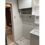 新品の洗面台へ交換。 位置も向きも変わったので開き戸ではなく引き戸になり、動線もスペースも確保されています。