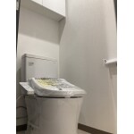 上部に収納を。スケルトンリフォームで配線廻りもすべてすっきりさせました。 手洗いのないタイプで、お手入れも簡単です。 出たらすぐ洗面所なので手洗いはそちらへ。 お掃除する箇所が減って負担も軽減されます。