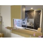 小窓だけで閉鎖的なので、横の壁を壊して対面カウンターにしてほしい。キッチンカウンターは、食事を運ぶトレイをのせたいのである程度の奥行きは欲しい。吊り戸棚は収納力も捨て難いので、一つだけ撤去して一つは残したい。キッチンカウンターと吊り戸棚の間壁は出来るだけコンロ側に広げたい。 食洗機の後付けは深型タイプがご希望。メーカーや細かい仕上がりについては提案してほしい。よくある一般的な食洗機の後付けをすると、扉の色柄が合わなかったり、最下段の扉の奥行が違く段差ができてしまう事をお伝えしたところ、予算にもよるができるだけ違和感のない仕上がりが良いとご要望をいただきました。