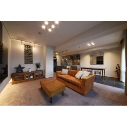 照明によって印象が変わるホテルのようなリビング