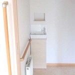 全面バリアフリー改修で段差のない床へ。移動しやすいように要所要所に手すりを設置。2室あった和室はどちらも洋室に変更。そのうち1つの洋室の隣にトイレを新設。介護しやすいように広めに作り入口は引戸にして車椅子でも利用しやすいようにしました。洗面台も車椅子対応のものを設置。浴室へも段差なしで行けます。
