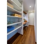 キッチン裏に壁を新設し、スペースを作って造作棚を作りパントリーに。ここで収納力が確保できました。