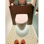 T社のレストパルFを設置いたしました。 床ではなく壁に設置するタイプのトイレであるため、なんの障害物なく床掃除ができます。またキャビネット右端には手洗器があり、利便性も抜群です。