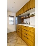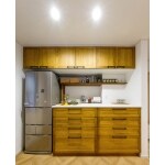 昇降式吊戸棚とバックカウンター増設で収納を有効活用!