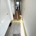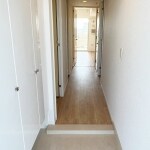 白いフローリングで明るい廊下に