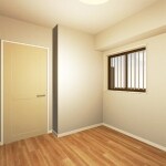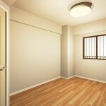 リビングに合わせ、こちらの洋室も、同じ明るいお色の木目調のフローリングと、白の壁紙で貼り替えさせていただきました。お部屋ごとに一部の壁紙にアクセントクロスなどを取り入れ、個性を出すという案もございましたが、すべてのお部屋のお色や素材を統一することによって、経費を抑えることが出来ますし、温かい木目調の流れが廊下を経由してお部屋全体に広がり、ホッと安心感に包まれた空間の広がりにも繋がるという効果が生まれます。そのような点を色々話合い、お色や素材を統一することにしました。